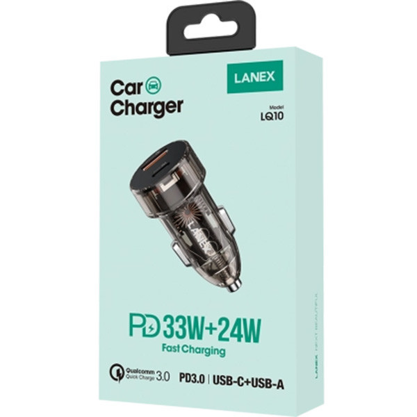 شارژر فندکی با دو خروجی و با قابلیت شارژ فوق سریع تا ۳۳ وات میباشد .