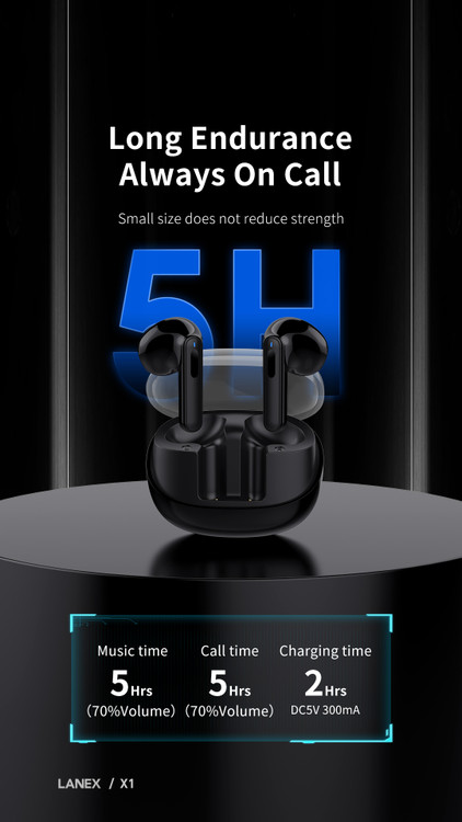 هدست بلوتوثی برند لانکس با شارژ دهی ۵ ساعت و قابلیت تماس HDمیباشد . این هدست تا ۵ ساعت شارژدهی با اتصال مداوم دارد و درگاه شارژ آن USB-C است .