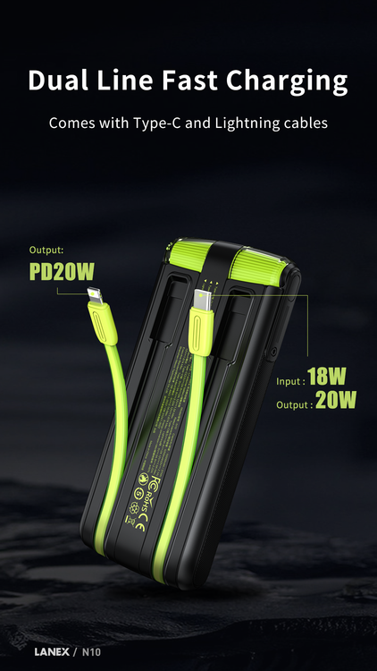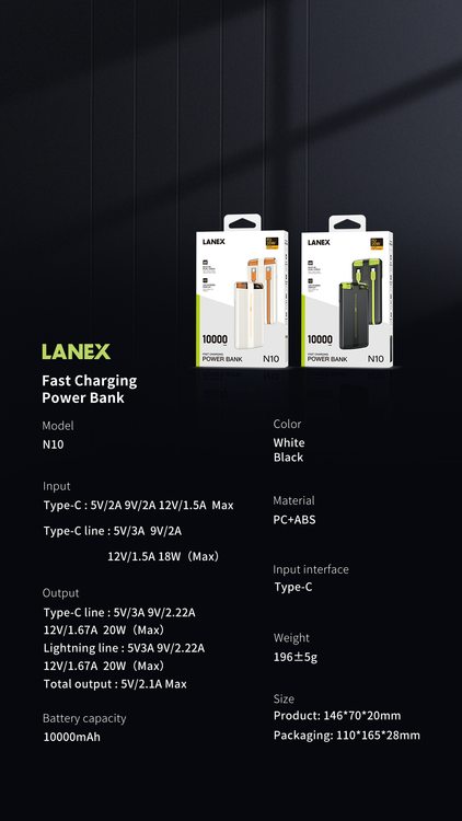 پاوربانک لانکس مدل N10 ظرفیت ۱۰۰۰۰ میلی آمپر ساعت